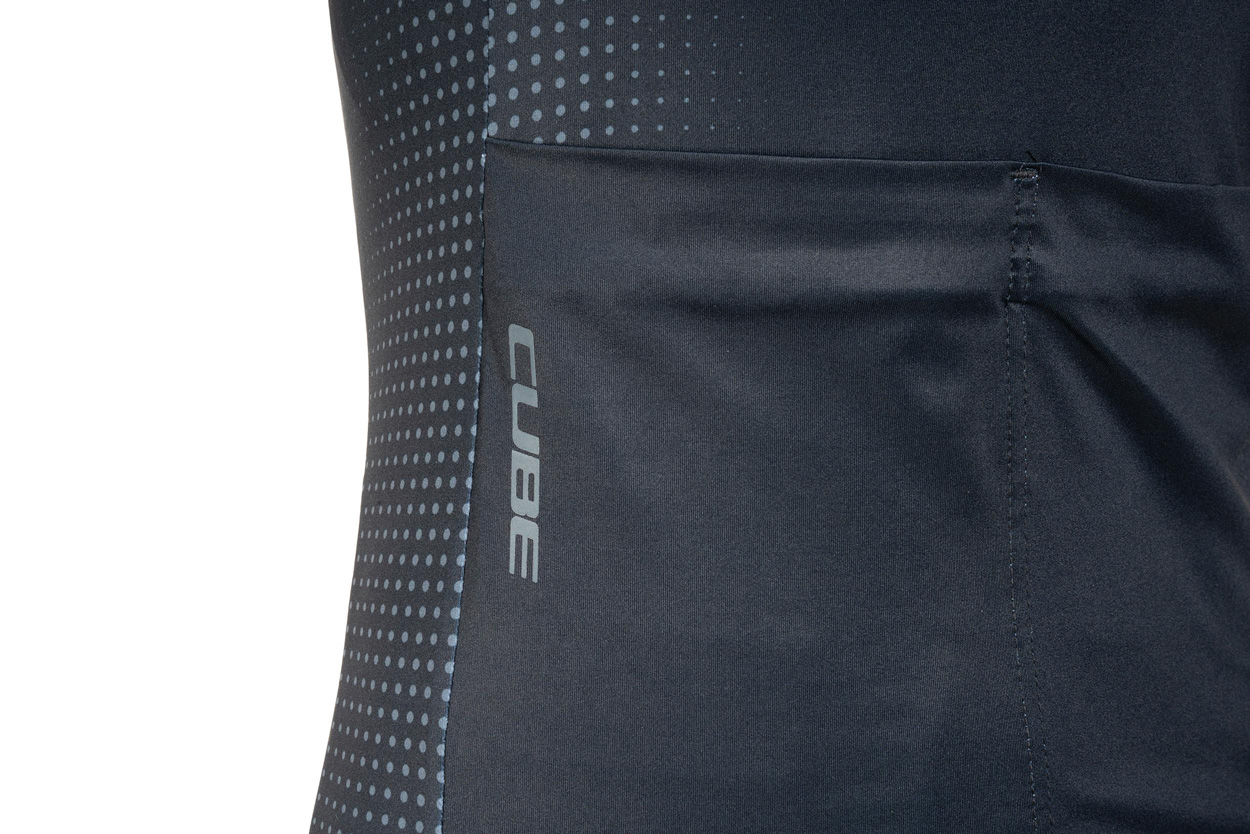 Unser CUBE Road/XC Kurzarmtrikot im athletischem, anliegend Schnitt, bietet im Schulterbereich viel Bewegungsfreiheit. Dank durchgehendem Reißverschluss vorne lässt es sich easy an- und ausziehen. Der silikonbedruckte Saum und der vorgeformte Kragen garantieren sicheren Sitz, ohne dass Zugluft unangenehm eindringt. In der 3-teiligen Rückentasche ist noch eine seitliche, wasserdichte Zipper-Tasche versteckt – praktisch für Wertsachen, wie Geldscheine oder Smartphone.