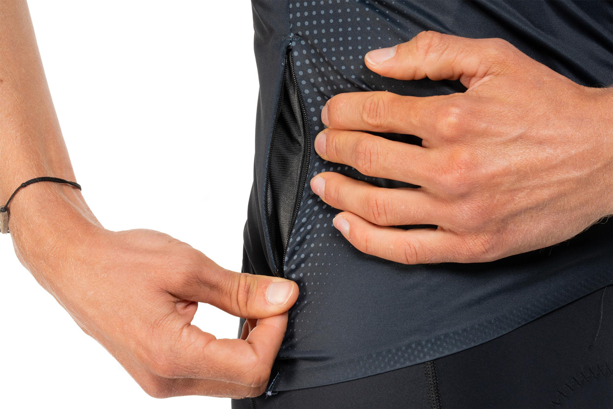enganliegend, weicher Innensaum mit breitem Silikonband, durchgehender Frontreißverschluss, 3-teilige Rückentasche, wasserabweisende Reißverschlusstasche hinten, widerstandsfähiges und schnelltrocknendes Funktionsmaterial, nahtfreier Schulterbereich, reflektierende Elemente
