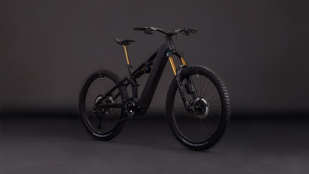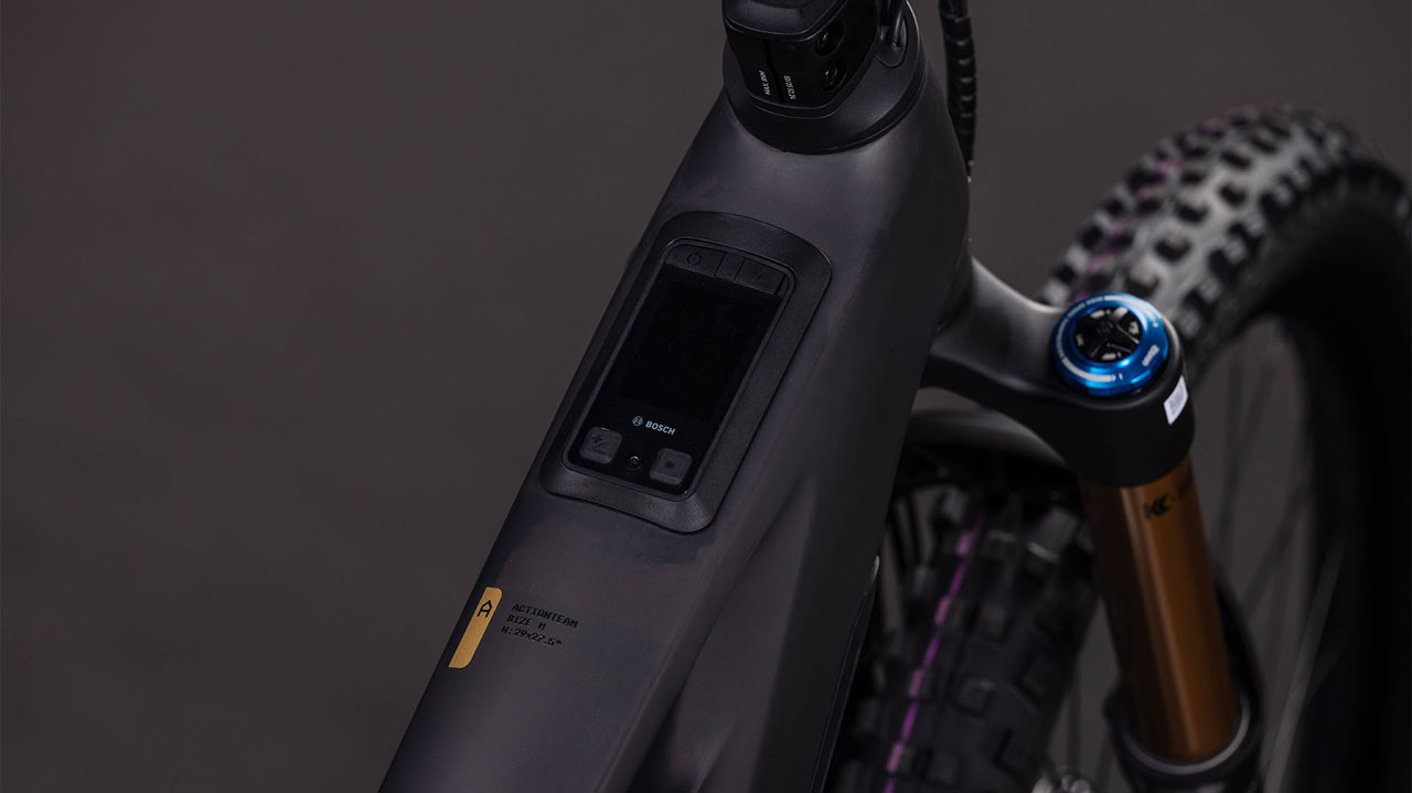 Der Rahmen des Stereo Hybrid ONE77 HPC ist wahrlich eine Klasse für sich, denn hier treffen 170 mm Federweg an der Front und am Heck auf ein Mullet-Set-up mit einem 29 Zoll Vorderrad und 27.5 Zoll Hinterrad. Damit werden Big-Mountain-Trail-Träume wahr! Wie immer bei CUBE maximal detailverliebt konstruiert auch der Rest: Integrated Cable Routing sorgt für einen supercleanen Look. Dazu kommt ein Steuersatz zur Winkelverstellung, mit dem sich das Handling an individuelle Vorlieben und Anforderungen anpassen lässt. Außerdem haben wir den 800 Wh starken PowerTube Akku gleich über dem Bosch CX Motor sauber und formschön ins Carbon-Unterrohr integriert. Für einfachere Ersatzteilverfügbarkeit gibt's ein UDH am Aluminium-Hinterbau – und weil wir auch eine Direct Mount Kettenführung verbaut haben, geht's mit diesem Fully selbst bei schwierigen Bedingungen weiter, weiter und immer weiter.