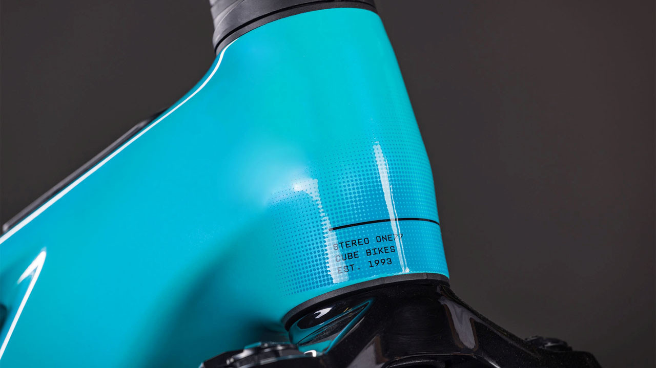 Der Rahmen des Stereo Hybrid ONE77 HPC ist wahrlich eine Klasse für sich, denn hier treffen 170 mm Federweg an der Front und am Heck auf ein Mullet-Set-up mit einem 29 Zoll Vorderrad und 27.5 Zoll Hinterrad. Damit werden Big-Mountain-Trail-Träume wahr! Wie immer bei CUBE maximal detailverliebt konstruiert auch der Rest: Integrated Cable Routing sorgt für einen supercleanen Look. Dazu kommt ein Steuersatz zur Winkelverstellung, mit dem sich das Handling an individuelle Vorlieben und Anforderungen anpassen lässt. Außerdem haben wir den 800 Wh starken PowerTube Akku gleich über dem Bosch CX Motor sauber und formschön ins Carbon-Unterrohr integriert. Für einfachere Ersatzteilverfügbarkeit gibt's ein UDH am Aluminium-Hinterbau – und weil wir auch eine Direct Mount Kettenführung verbaut haben, geht's mit diesem Fully selbst bei schwierigen Bedingungen weiter, weiter und immer weiter.