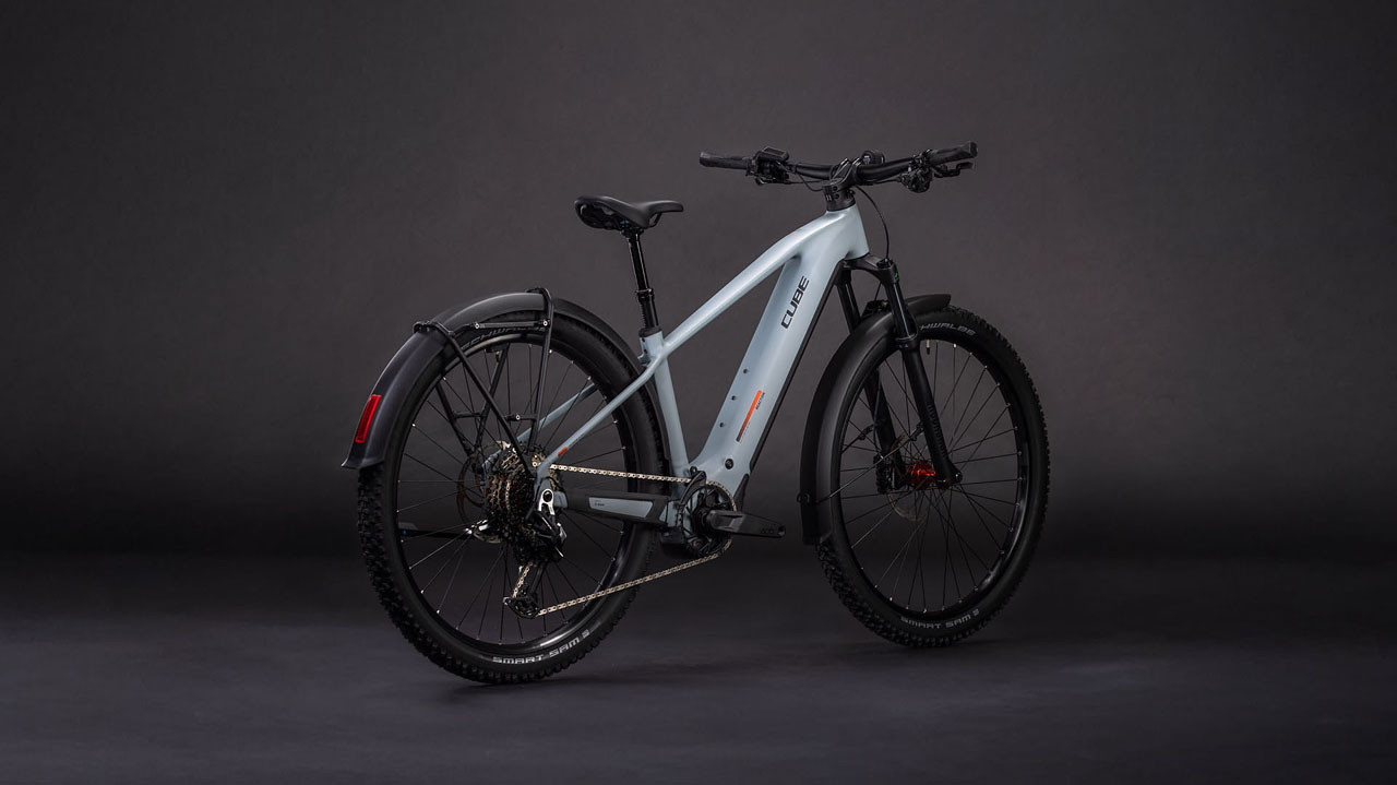 Das Reaction Hybrid Race FE steckt voller praktischer Details. Zum einen ist es standardmäßig mit Schutzblechen, einem robusten Gepäckträger, einem sauber ins Design integrierten Beleuchtungssystem und einem stabilen Seitenständer versehen. Außerdem mit einer versenkbaren Sattelstütze für optimiertes Handling auf steilen Trails. Zum anderen macht die breit gefächerte 12-fach Transmission 90 von Sram selbst anspruchsvolle Routen zum Kinderspiel. Für höchsten Fahrkomfort und 1a-Kontrolle haben wir 2.6 Zoll breite, griffige Schwalbe Pneus und eine einfach einstellbare Rockshox Recon Silver Luftfedergabel mit 120 mm Federweg (100 mm bei den kleinsten Rahmengrößen und den Tiefeinsteiger-Modellen) verbaut. Apropos Kontrolle: Die hydraulischen Louise 4-Kolben-Scheibenbremsen von Magura verzögern das Bike selbst bei Nässe zuverlässig und sicher. Wir haben uns also um alles gekümmert – jetzt heißt's aufsitzen und Spaß haben!