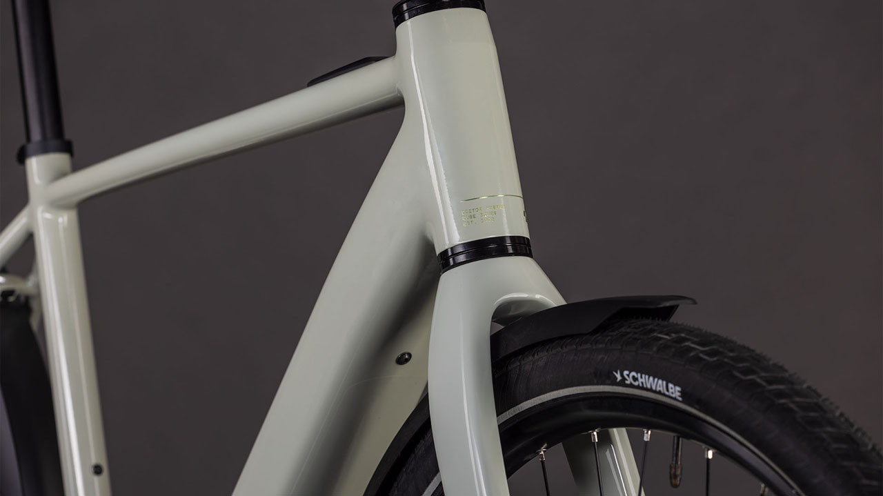 Ultraschlank und superdezent – kann das ein E-Bike-Rahmen sein? Oh ja, und zwar der des Editor Hybrid FE. Seine leichte, robuste Aluminiumkonstruktion mit den im Smooth Welding Verfahren gestalteten Hauptrohrverbindungen ergibt ein elegantes Chassis, das wir mit einer leichten und zugleich stabilen Vollcarbongabel ergänzt haben. Um die Optik möglichst clean zu halten, verlaufen die Leitungen im Inneren und der 400 Wh starke Akku wurde ästhetisch ins Unterrohr integriert, was auch noch Platz und Gewicht spart. Dazu kommt ein vielseitiger, robuster Gepäckträger am Heck und ein optionaler Front-Gepäckträger für sämtliches Hab und Gut auf dem Weg durch die City. Außerdem Schutzbleche, helle Lichter und ein praktischer Seitenständer. Kurz: Wir haben an alles gedacht, was im Großstadtdschungel wichtig ist!