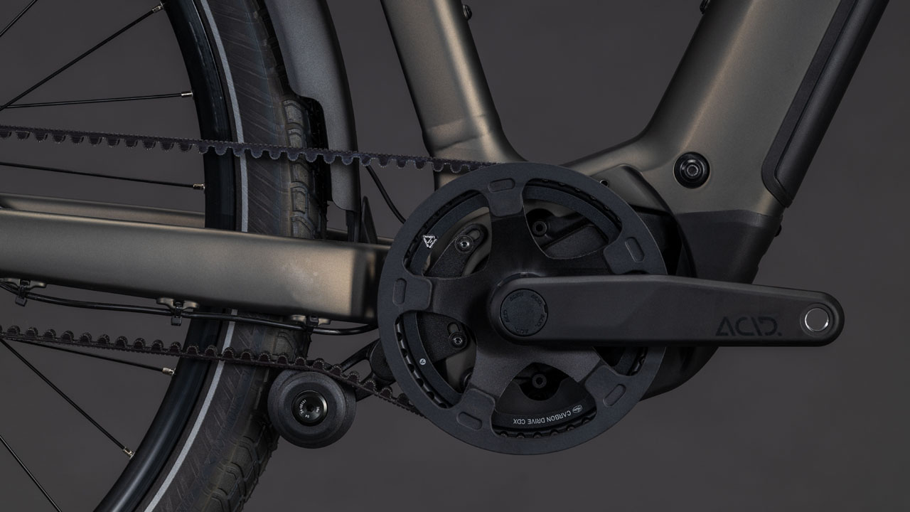 Bei der Entwicklung unseres Touring Hybrid Rahmens standen Vielseitigkeit, einfaches Handling und hoher Fahrkomfort ganz oben auf der Liste. Deshalb haben wir ihm auch direkt einen ebenso stabilen wie stylishen semi-integrierten Gepäckträger 2.0 spendiert. Darauf findet bequem alles Platz, was auf Tour mit muss. Auch der leistungsstarke Bosch Performance PX Motor fügt sich samt 800 Wh PowerTube Akku so formschön ins Design ein, dass er kaum auffällt. Was aber natürlich auffällt, ist der tolle Support im Vorwärts! Für ein komfortables und zugleich kontrolliertes Fahrgefühl, selbst auf holprigen Strecken, sind unsere Efficient Comfort Geometry und die Federgabel mit ihren 100 mm Federweg zuständig. Was noch? Ein ACID Kettenschutz, ein Seitenständer, Schutzbleche und Lichter.