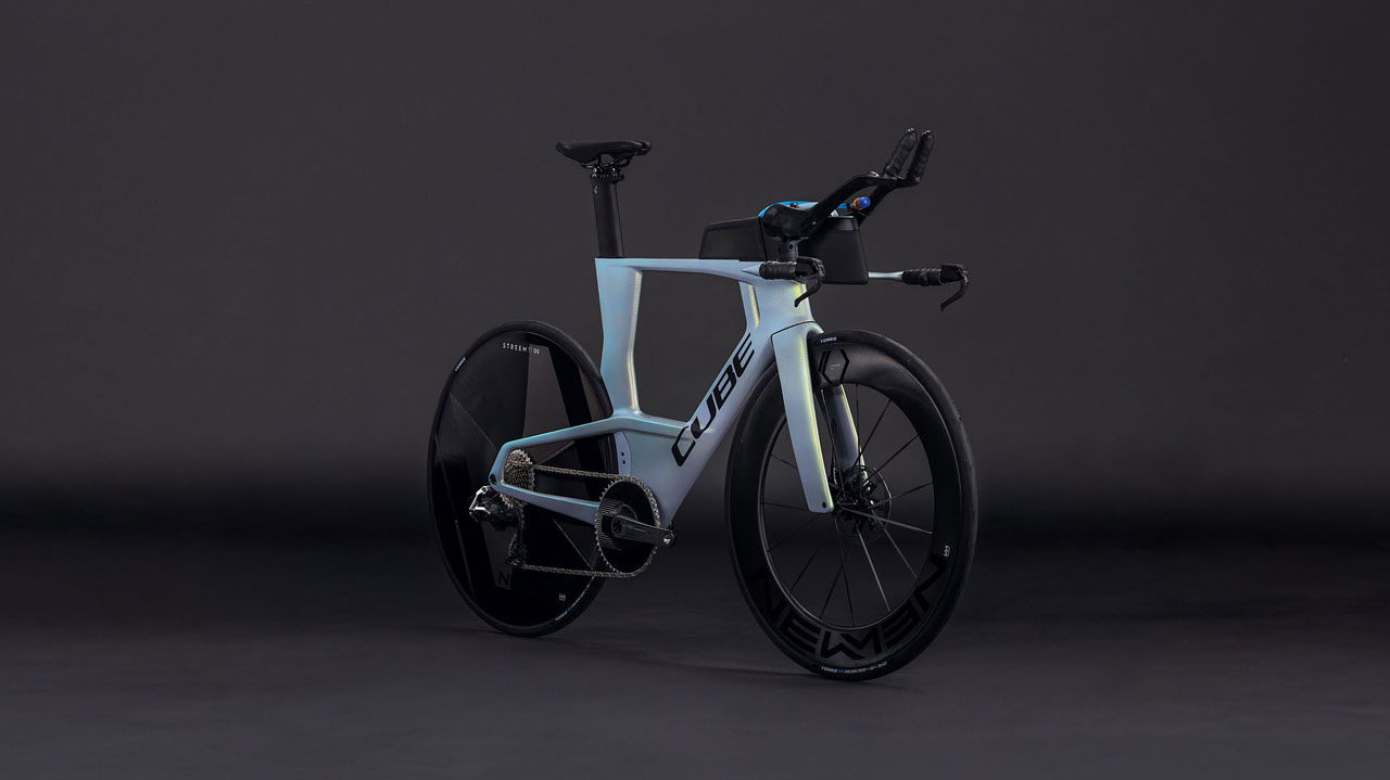 Der härteste Gegner im Kampf um Sekunden? Genau, der Luftwiderstand! Deshalb haben wir unser siegreiches Triathlon-Bike noch mal unter die Lupe genommen und mit noch aerodynamischeren Komponenten bestückt. Das Ergebnis ist das Aerium C:68X SLT Aero, das durch die Luft schneidet wie ein heißes Messer durch Butter! Profile Design ASC Pro Extensions und unser CUBE Cockpit ermöglichen eine individuelle, aber extrem windschnittige und damit supereffiziente Sitzposition. Der Newmen Streem TT80/Disc Vonoa Laufradsatz kommt mit einer Carbonscheibe hinten, die perfekt mit dem Hochprofil-Vorderrad harmoniert. Durch die Kombination mit den aerodynamischen Pro One Aero Pneus von Schwalbe wird jedes Watt effizient in Vortrieb umgewandelt. Diese Power übersetzt die Sram Red AXS 1x12-fach Schaltung mit einer gewachsten Ceramicspeed Red Kette samt passender Red Kurbel mit eingebautem Powermeter. Ebenso aerodynamisch wie kraftvoll: die Sram S-900 Aero Bremsen. Dieses Bike bedeutet Speed pur – damit ist der beste Bikesplit so gut wie gesetzt!