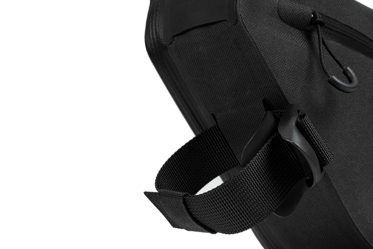 verschweißte Konstruktion, wasserdicht, abriebfestes Außenmaterial, PVC-frei, flexible Anbringung durch umlaufendes MOLLE-System, reflektierende Elemente auf beiden Seiten, Seitenfach, vielfältige Anbringungsmöglichkeiten für diverse Objekte im Inneren, farbig abgesetzte Fächer im Inneren der Tasche, selbsterklärend, intuitive Nutzung durch eine abgestimmte Konstruktion, passend für verschiedene Rahmentypen